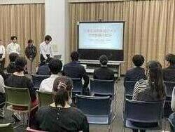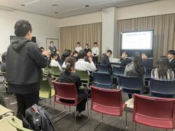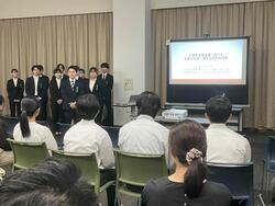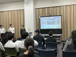 その中で、人文学部からソーシャルビジネス論ゼミナール・経営学総論ゼミナールの学生が順番にパワーポイントを使って個別研究発表を行いました。